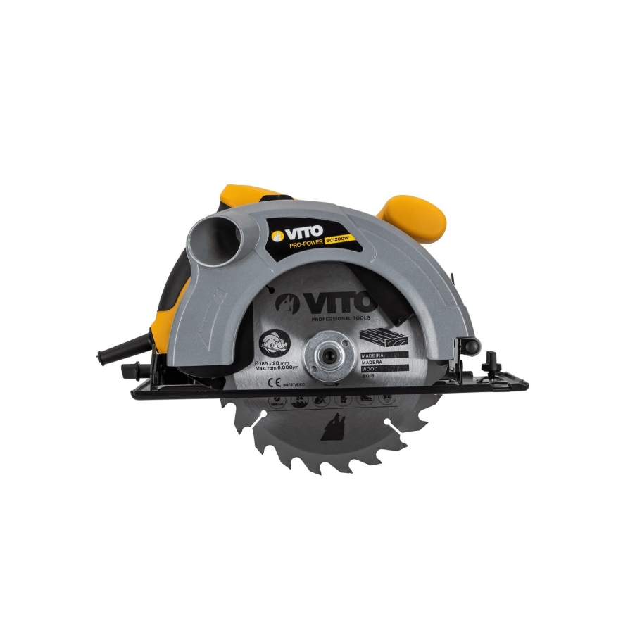 Serra Circular com uma potência nominal de 1200W tem uma velocidade de rotação em vazio de 4500rpm, com um diâmetro do disco de 185mm, tem um diâmetro do furo do disco de 20mm, com uma espessura do disco de 1,4mm com 24 dentes, para o ajudar a realizar todos os seus trabalhos de forma segura e eficaz.