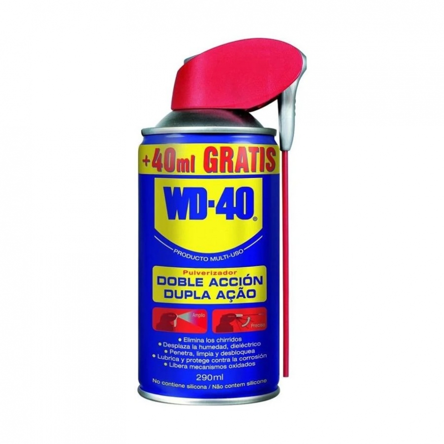 O sistema inovador inovador do formato WD-40 Produto Multi-Uso Dupla Ação permite alternar facilmente de uma aplicação ampla para uma precisa em apenas um click sem perder a cânula.